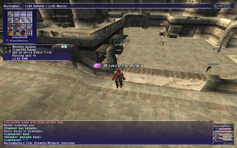 I hit 60 BLM a little while ago ^^ Now Ken and I are both 60! (for our jobs to level together... which is BLM me, and RDM him... he already hit 60 on like... 4 other jobs... X_X) We are going to go get random jobs and level them up... I need to unlock like... all of them -_- cause I only have SMN, BLU, and PUP opened... oops? XD We are going to just level the little jobs up - My character collecting Beastmen seals, while he works on a new mule that he will delet later after he gets the tarut cards.... we need ALOT because... well... we BOTH need Sleepga II... oops X_X
